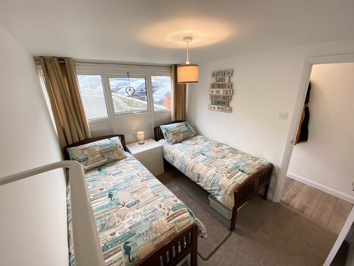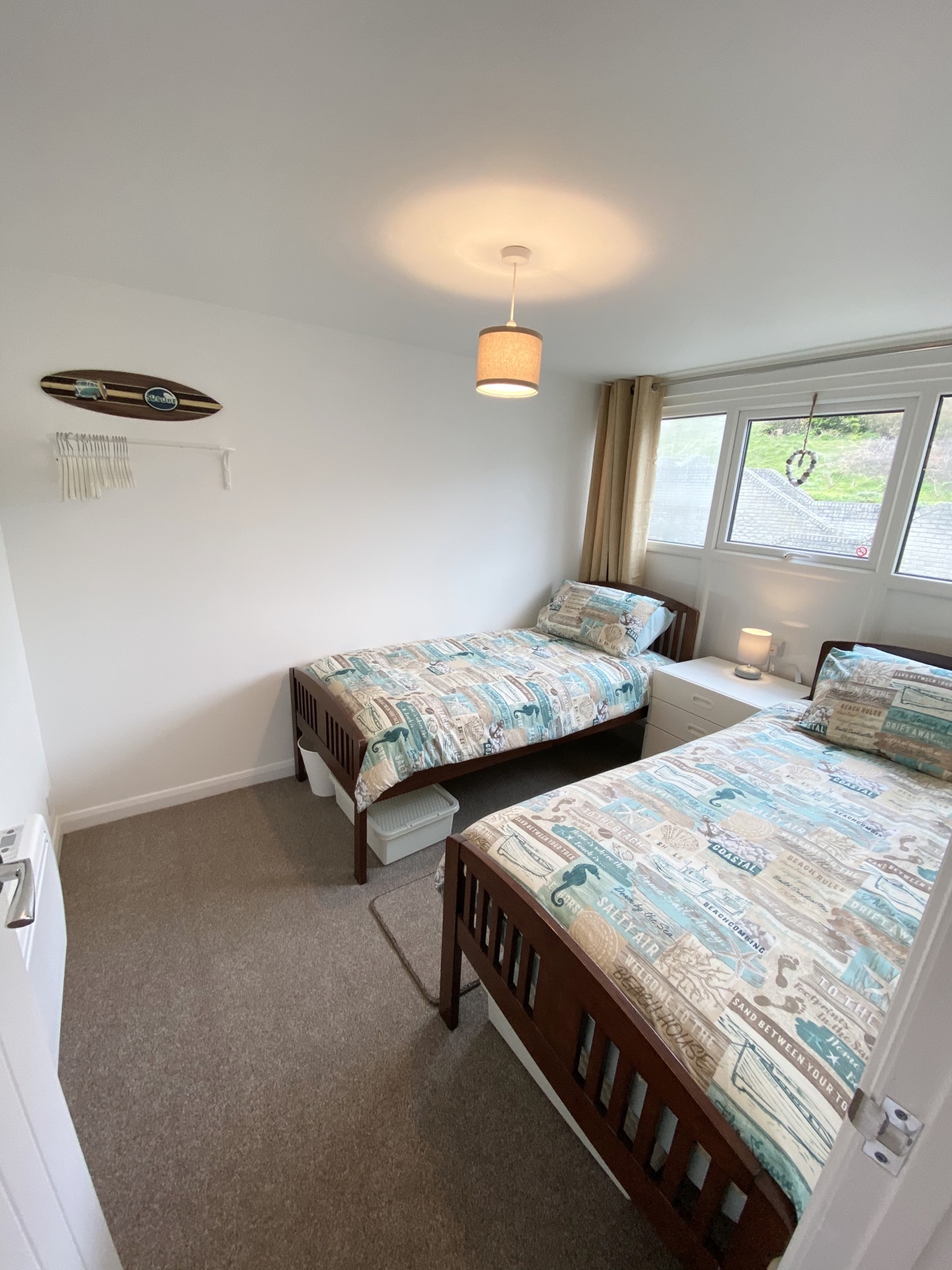 What a wonderful hidden gem. Sunsets is a fabulous apartment, with a super balcony that overlooks the beach. Two spacious bedrooms, the mezzanine main bedroom is comfortable and very relaxing, especially with the velux window enabling you to sleep to the sound of the waves. The twin bedroom is a good size and as a party of four adults we had plenty of space. The kitchen is well equipped, although with three wonderful eating establishments within a stones throw, we didn’t do much cooking ourselves. The seating area is comfortable and on a dreary day we turned the sofa around and sat watching the enormous waves rolling in. Porthtowan itself is a beautiful setting. We spent a lot of time exploring the beach and bays and watching the surfers. There are also lovely costal walks in both directions. It was a wonderful retreat from the hustle and bustle of a busy life and we will hopefully be back before too long. Sarah is a wonderful host and any queries are promptly responded too.