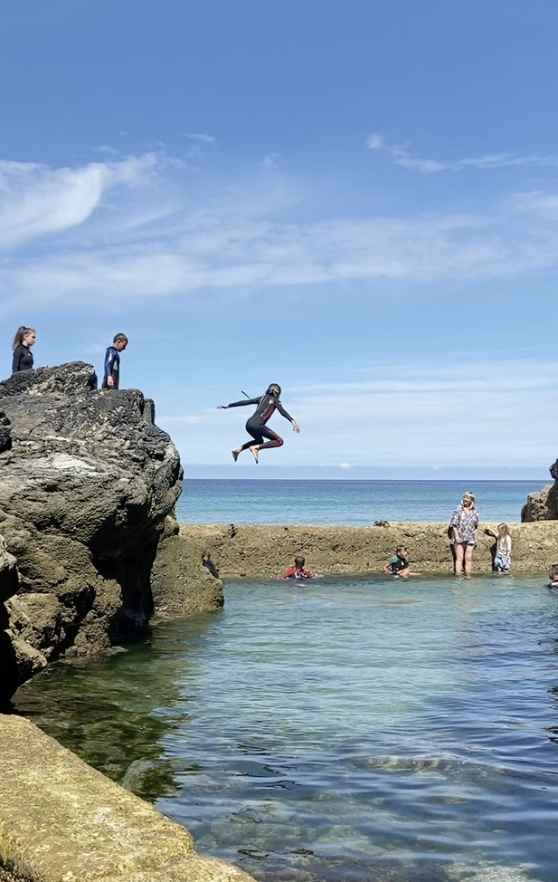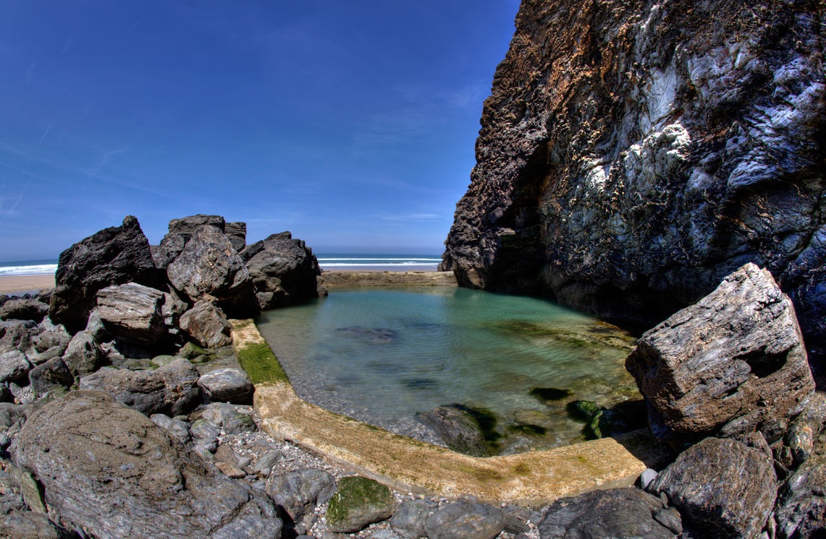 The “Mermaid Pool” is actually a tidal sea pool tucked into the rocky cliffs on the eastern side of Porthtowan Beach.