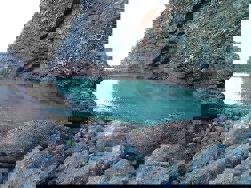 Originally, there were steps from the cliff path down to the pool — but those have become unsafe due to erosion and rock falls, so they’re not reliable anymore.